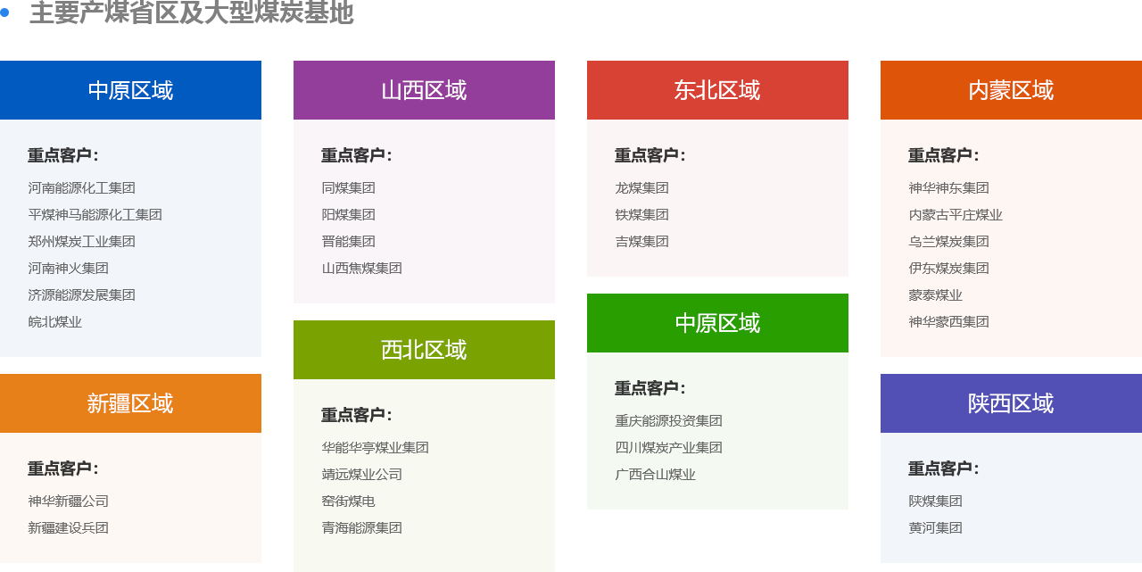 我們在全國范圍內建立了陜北、陜南、東北、山西、中原、內蒙、西北、西南、新疆等區域營銷服務中心,并在主要產煤區域建立了產品備件庫。同時在全球范圍內設置了亞洲(印度、印尼土耳其越南)、澳洲、東歐(俄羅斯、烏克蘭、波蘭等)等綜合服務機構。