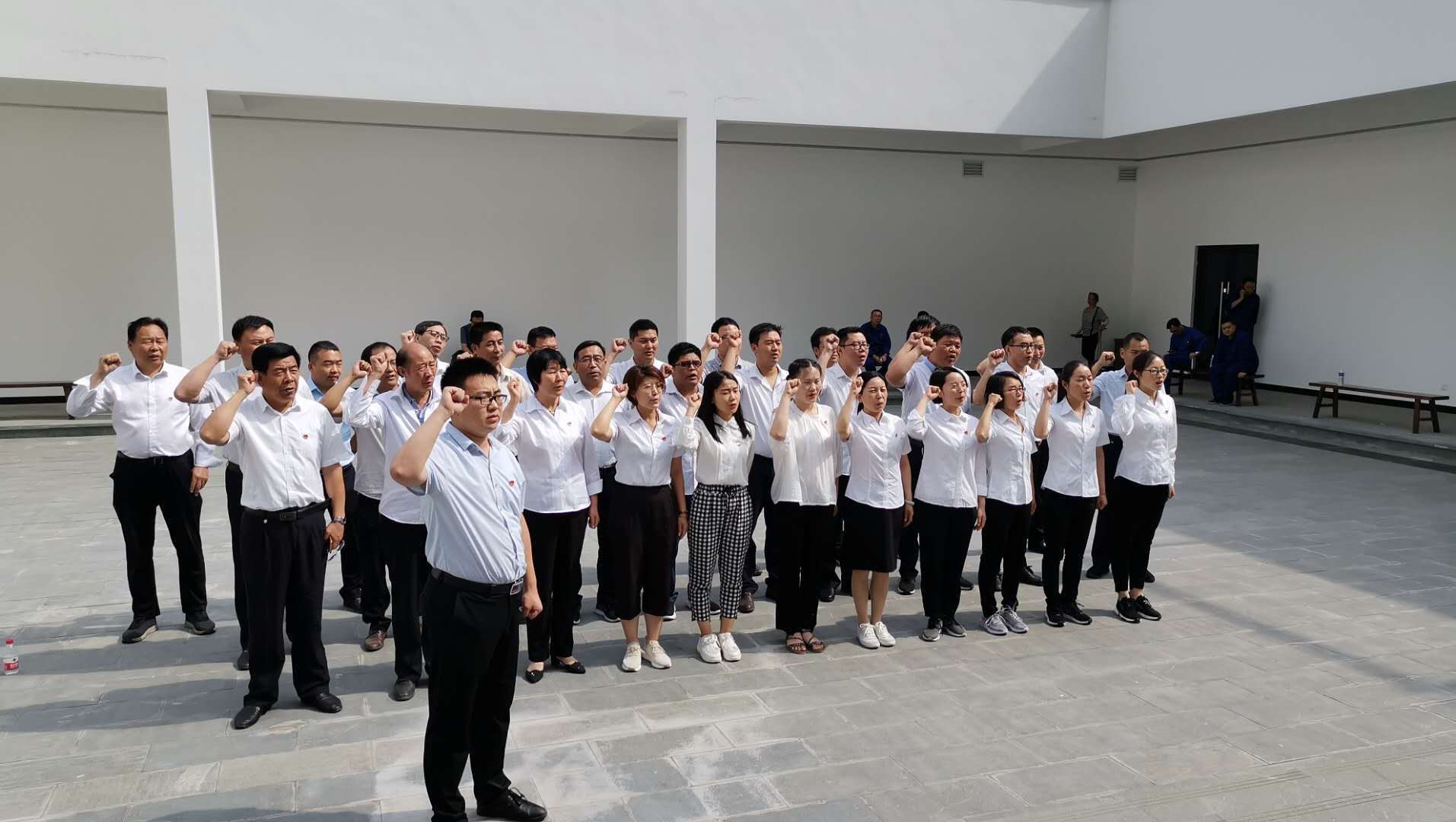 現場參觀學習結束后,全體黨員面對鮮紅的黨旗,集體宣誓,重溫入黨誓詞,堅定理想信念,提升思想境界。
