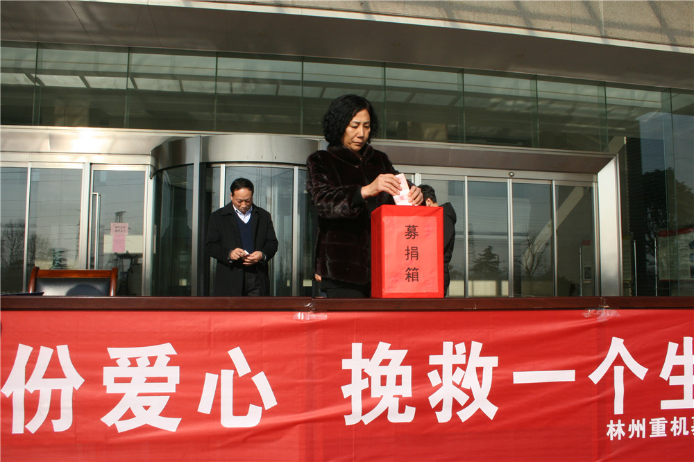 11日上午,公司工會立即發出募捐倡議書。下午二點在公司辦公樓前舉行了募捐儀式并現場募集。公司總經理郭釧代表公司捐款10000元,公司董事韓錄云代表其家人捐款10000元,其他公司領導及機關部室、分子公司管理人員紛紛捐款,特別是與郭保紅素不相識、在我公司施工的深圳市朗奧潔凈科技股份有限公司捐款3000元,河南派普建工集團有限公司捐款1000元,供應商延津縣熱處理廠張東福看到募捐活動也捐款500元,短短不到半個小時募集捐款近4萬元。更值得一提的是原林州重機集團員工張國華,也是腎病患者,曾經得到過林州重機捐款資助的他看到朋友圈的消息后,也委托朋友捐款10元,他說:我也是一名尿毒癥患者,我也曾經得到過林州重機的捐助,現在我雖然還在治療之中,但我也要盡我一點心意。多么樸實的話語,多么善良的員工,一方有難八方支援,真正體現出了我們林州重機是一個互助友愛的大家庭。12日中午,公司工會又在職工食堂舉行第二次募捐活動,累計募捐善款 42337元。