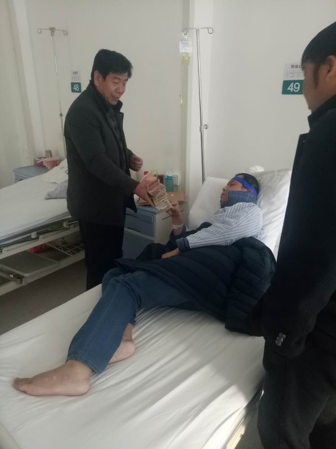 1月13日,公司工會主席路建存受公司董事長郭現生、總經理郭釧的委托,親自到鄭大一附院看望了郭保紅同志,并將募集到的42337元善款交到郭保紅手中。郭保紅含著眼淚說:感謝重機集團郭董事長和郭釧總經理,謝謝重機集團的全體員工,我已不在重機上班了,但重機集團并沒有忘記我,我和我家人一輩子都不會忘記重機領導和員工。路主席對郭保紅說:你要安心養病,積極配合治療,重機永遠是你的家,永遠是你的堅強后盾,相信你一定會戰勝病魔,早日康復。